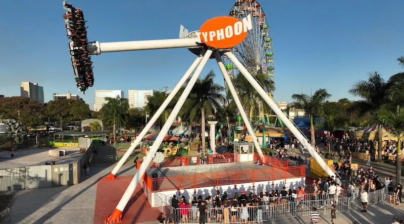 Atração principal: Roda-gigante iluminada e brinquedos radicais como o Rock & Roll.